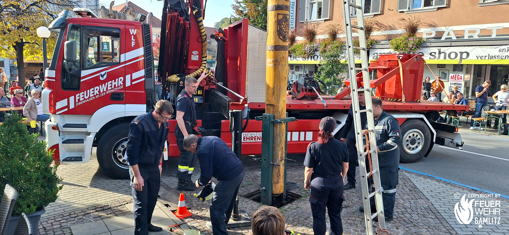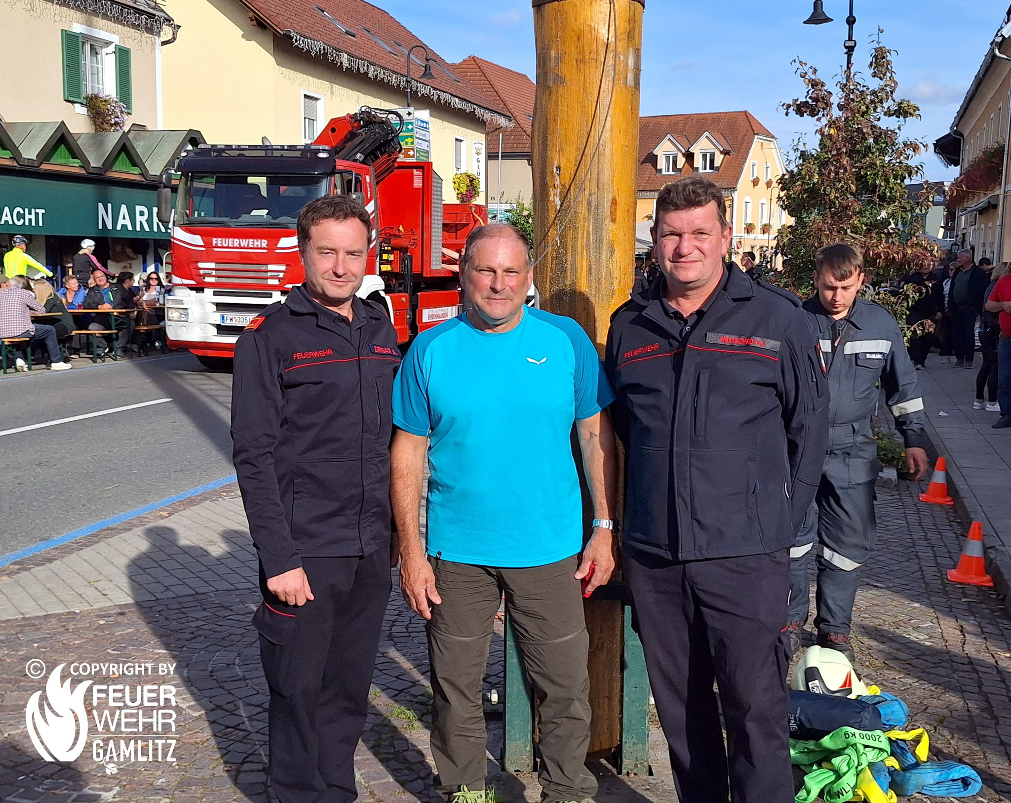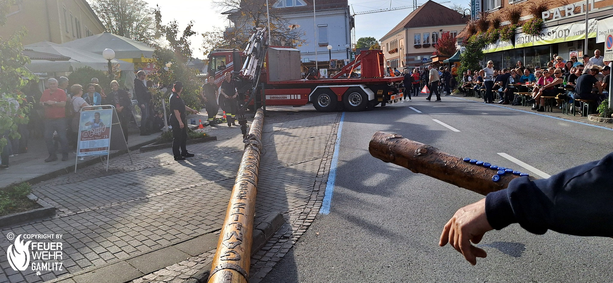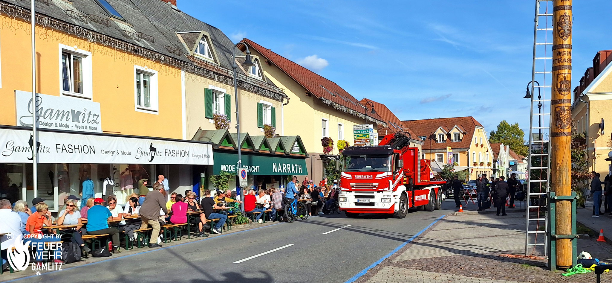Am Samstag, den 11. Oktober 2025 fand das diesjährige, in Gamlitz mittlerweile traditionelle und mit einem Herbstfest verbundene Maibaumumlegen der Freiwilligen Feuerwehr statt.