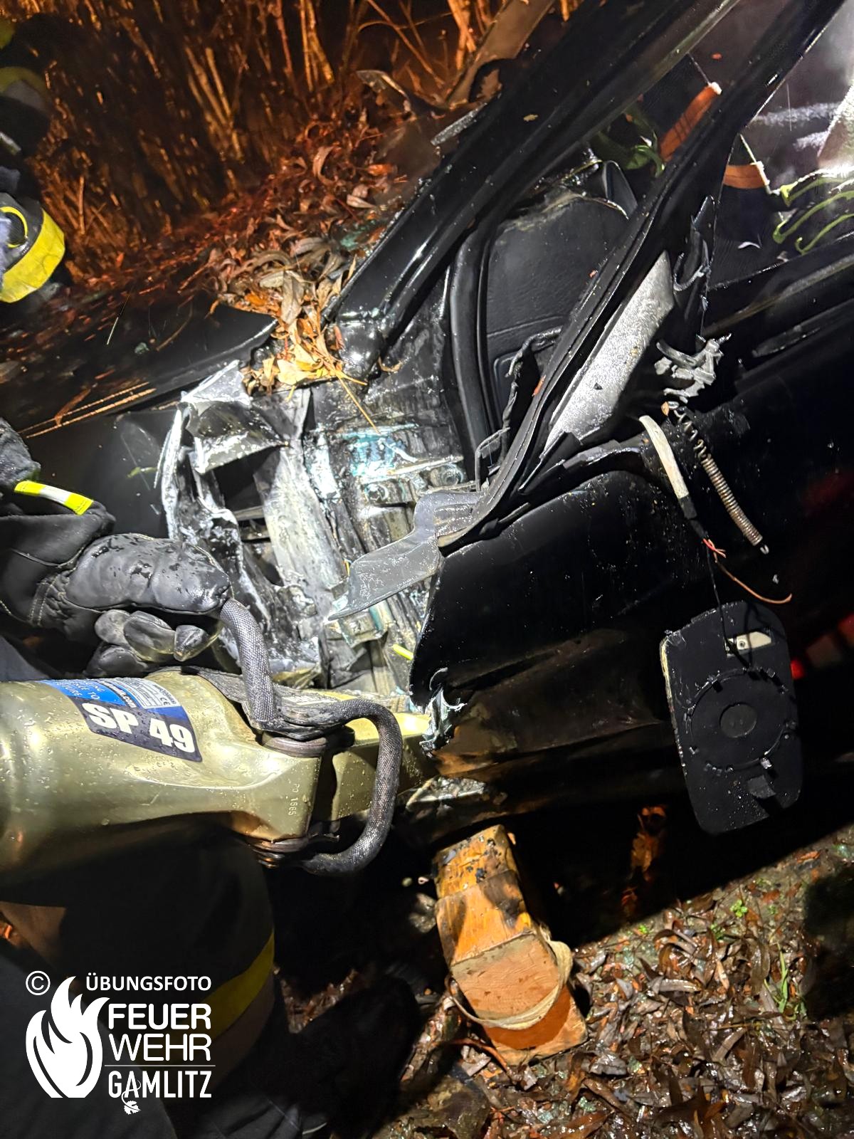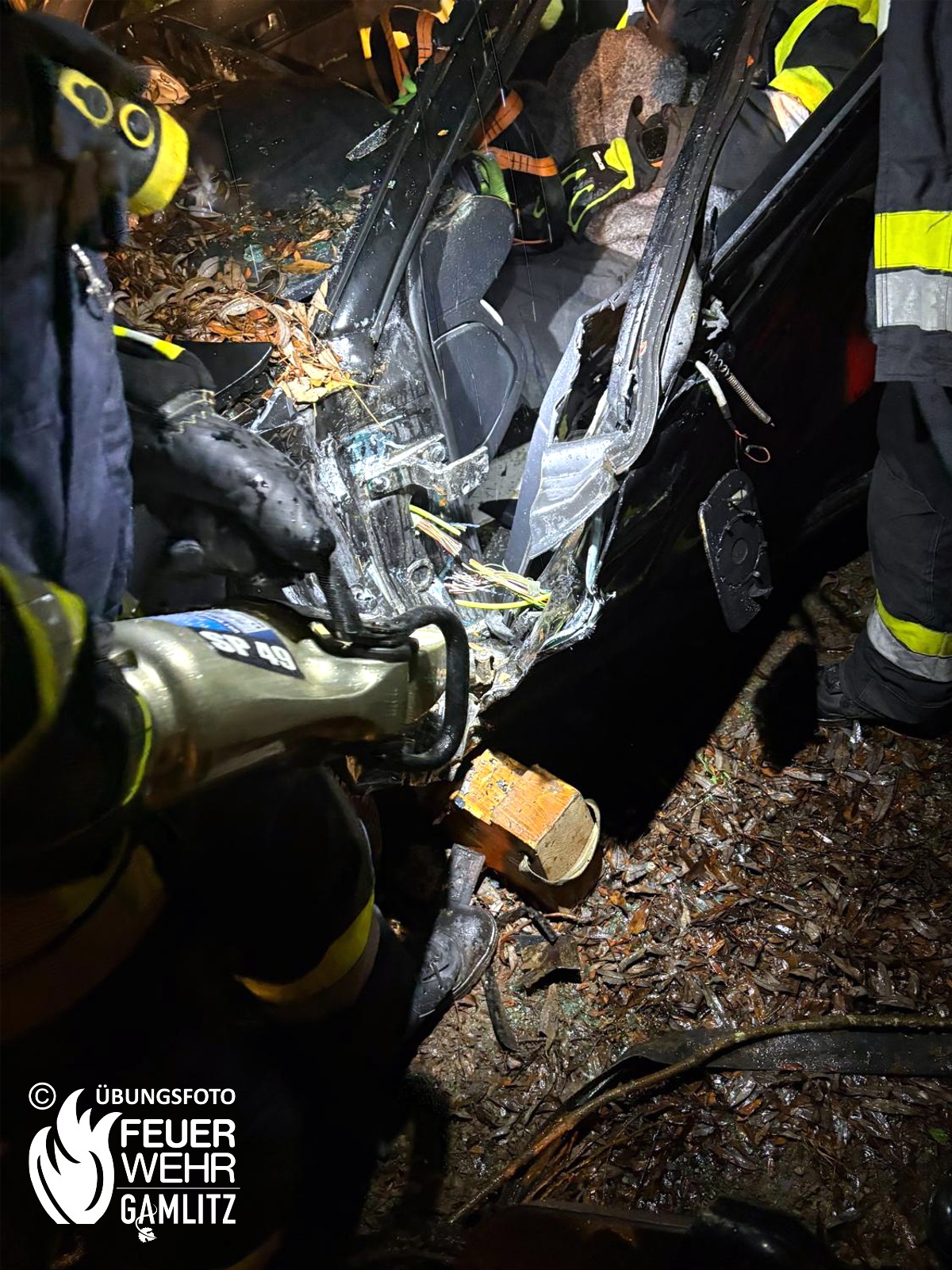 Geübt wurde an einem zur Verfügung gestellten Fahrzeug. So konnten die Kammeraden während der Übung den Umgang mit dem hydraulischen Rettungsgerät sowie den Aufbau einer Geräteablage, das